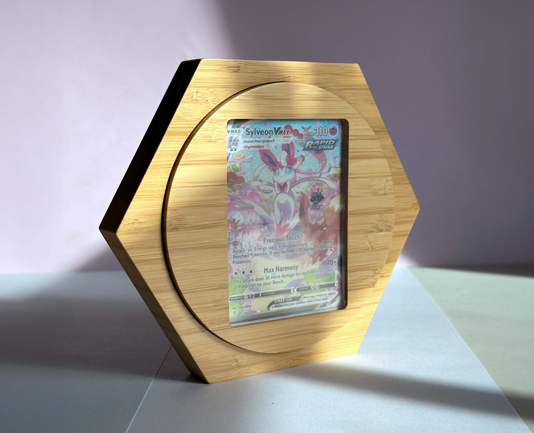 The modular, sustainable, trading card display frame that allows you to actually SEE your favourite cards, while also offering protection.