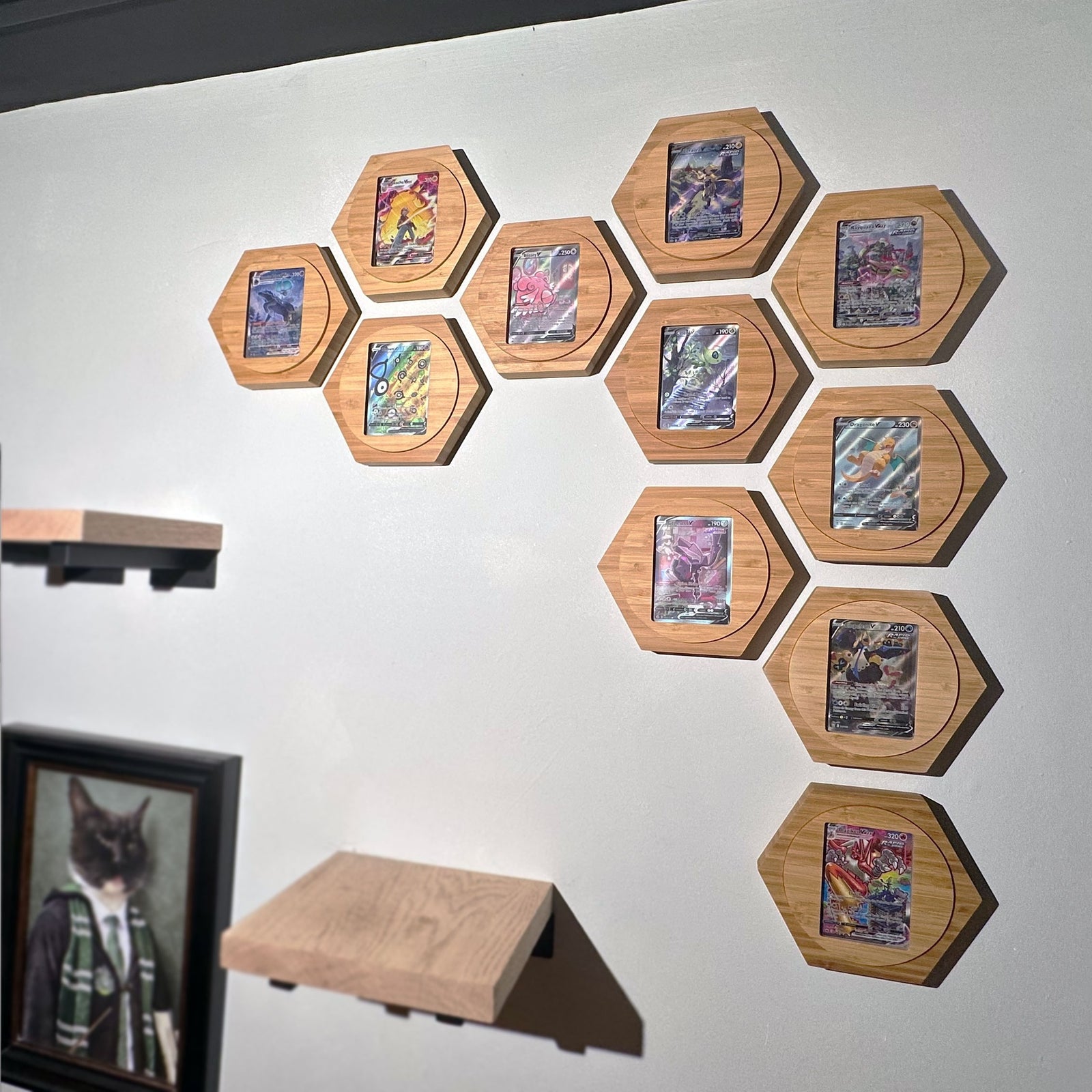 Natural bamboo brings warmth and subtle variation to each frame, letting the card art shine.