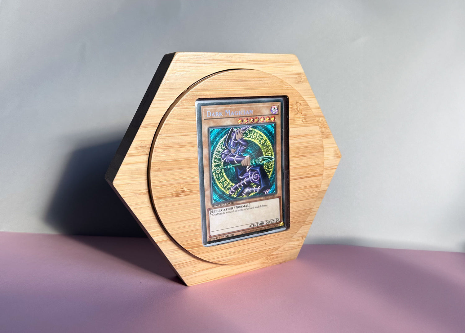 Display Yu-Gi-Oh cards and keep them safe at the same time. With UV resistance to protect from sunny spots and 3mm thick acrylic, all sandwiched between a solid and stylish bamboo case.